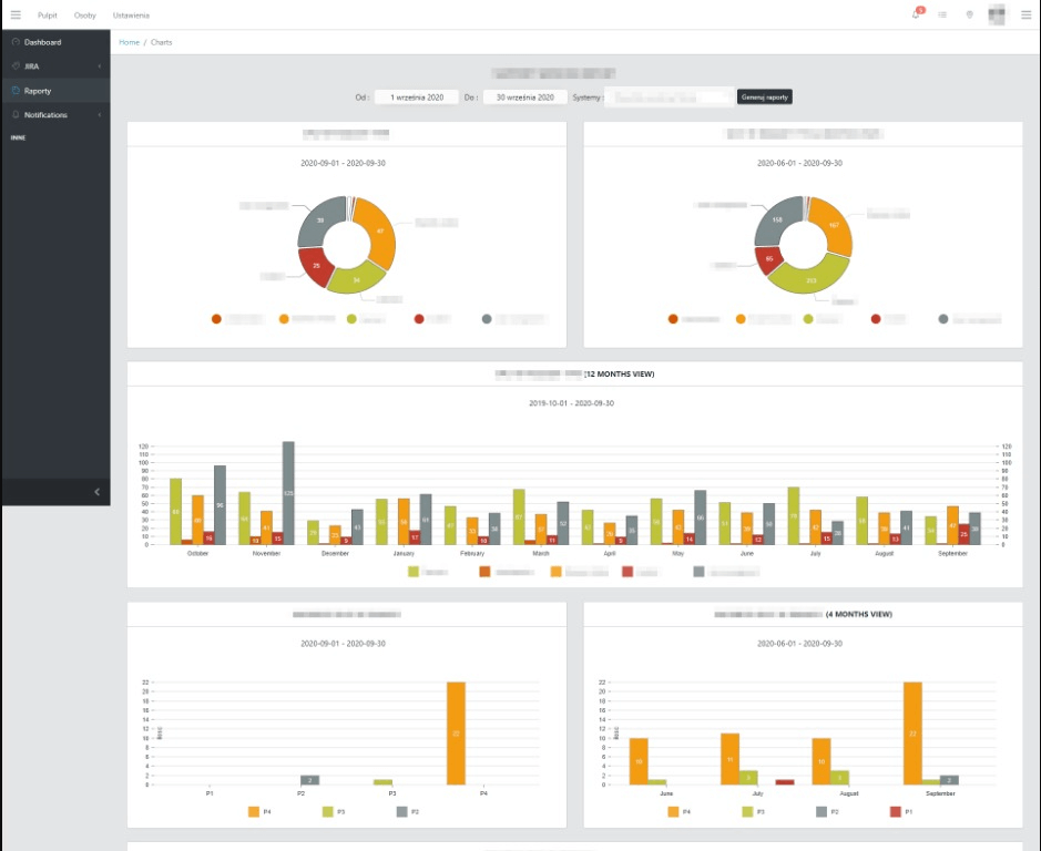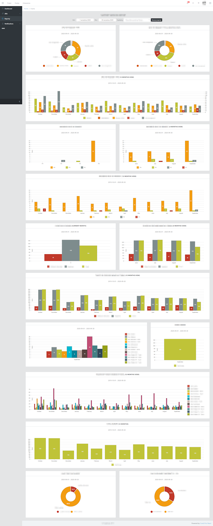 Projekt intranetowy - raport prezentujący dane w graficznej czytelnej formie.